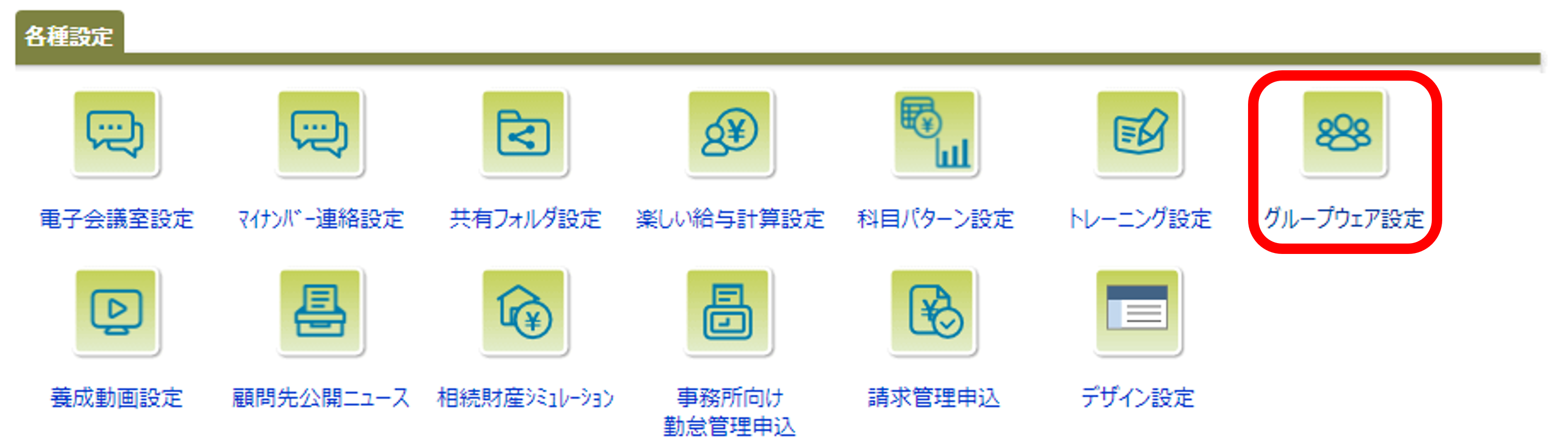 ①右上歯車のマークをクリックし、「グループウェア設定」をクリック