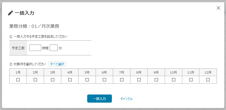 ⑤工数と対象月を入れ、「一括入力」をクリック
