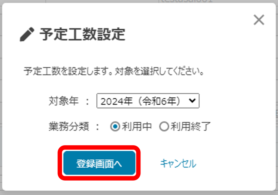 ③対象年と業務分類を選択し、「登録画面へ」をクリック