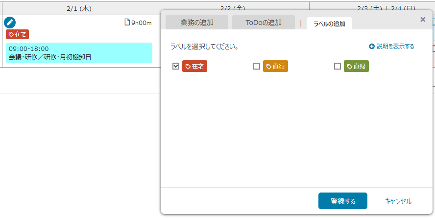 「在宅勤務」や「直帰」など職員の状態をカレンダーで分かるように登録することはできますか?