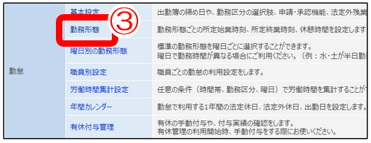 ③「勤務形態」クリック