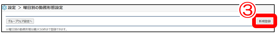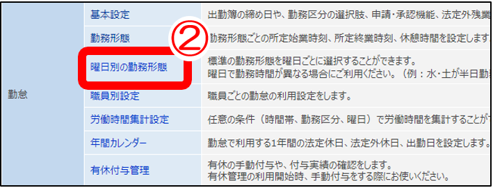 ②「曜日別の勤務形態」クリック