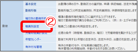 ②「職員別設定」クリック