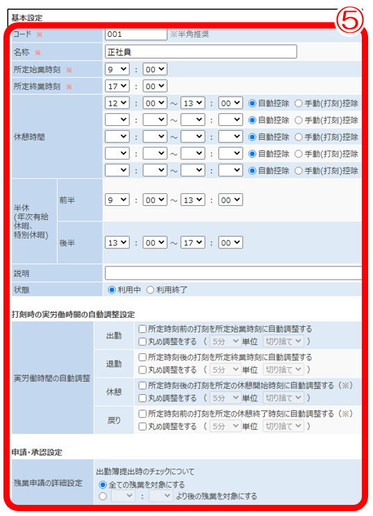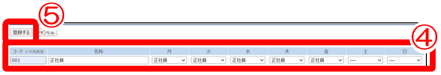 ⑤勤務形態を登録