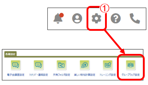 ②「グループウェア設定」クリック