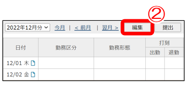 ②「編集」ボタンをクリック