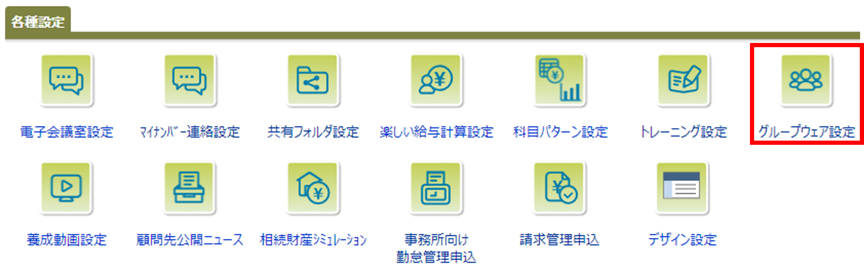 2.「グループウェア設定」をクリック