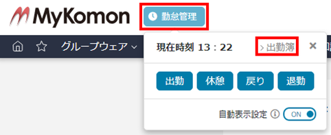 1.出勤簿を利用している本人のIDでMyKomonにログイン