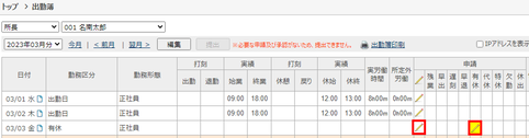 3.黄色の箇所もしくは申請一番左の鉛筆マークをクリック