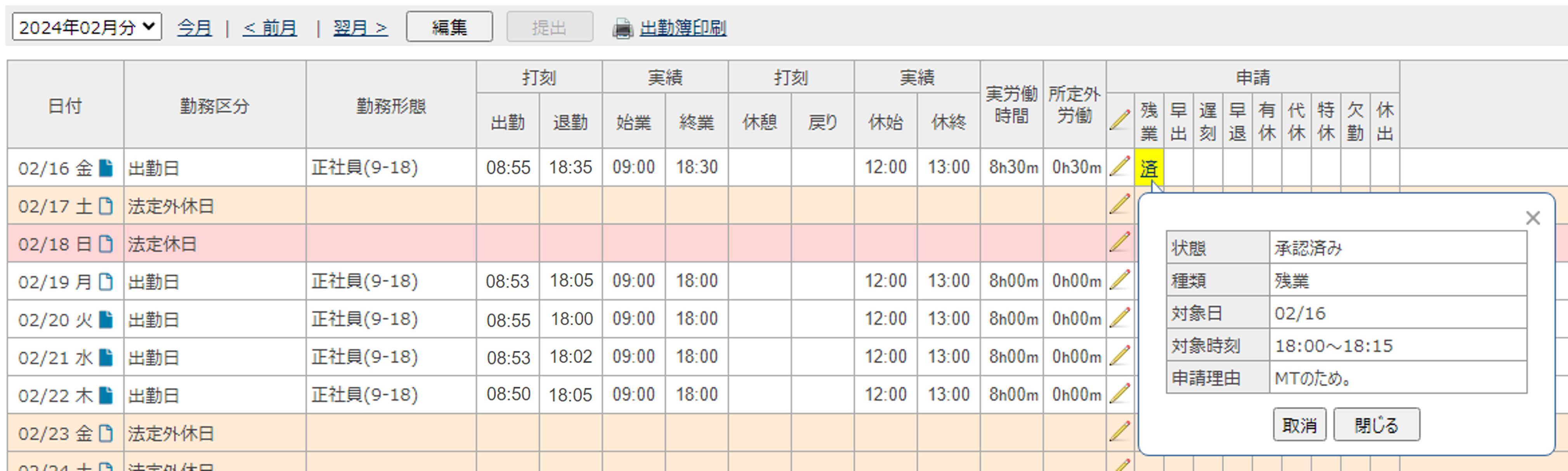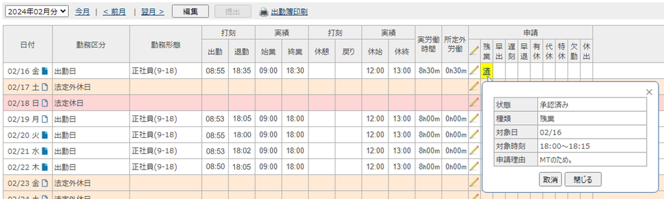 勤務区分や申請欄が黄色になっている。どうしたらよいですか?