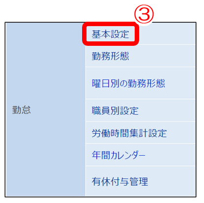 ③「基本設定」をクリック