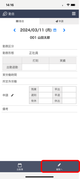 スマートフォンから利用する場合、出勤簿の編集は行うことができますか?