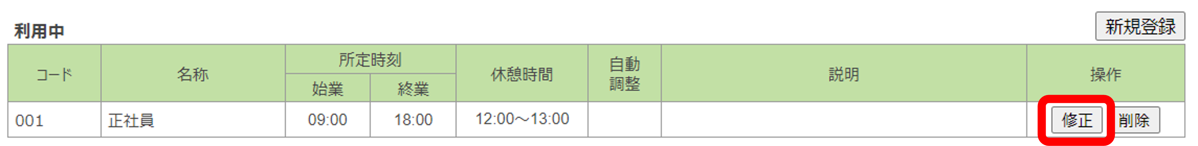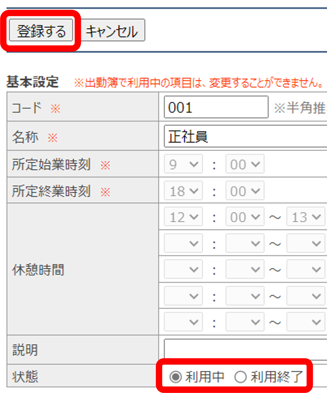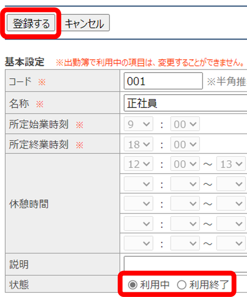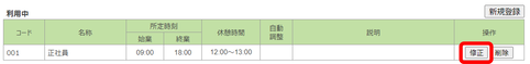 すでに利用中の勤務形態を修正することは出来ません。