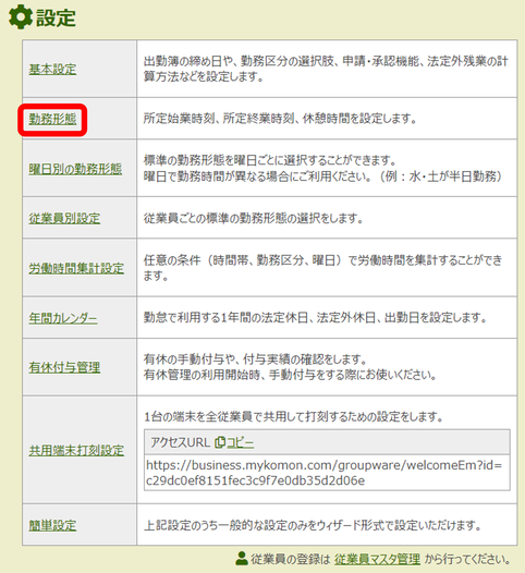 ※従業員別設定で新たな勤務形態を選択すると、翌日以降の出勤簿より反映されます。