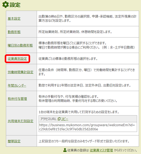 2)従業員別設定