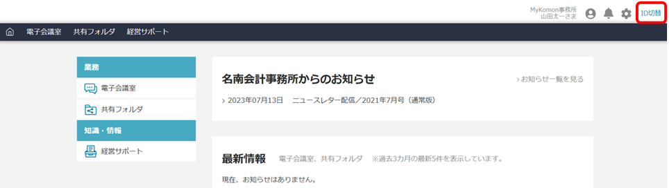 右上の「ID切替」をクリックすることで簡単にIDを切り替えることができます。