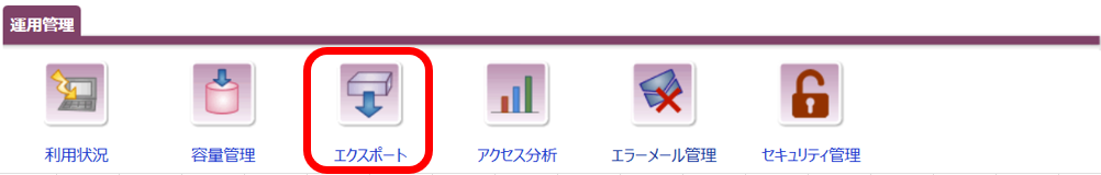 ①画面右上の歯車マークから、運用管理のエクスポートをクリック