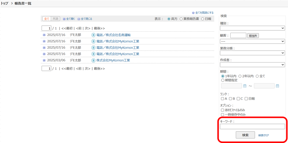 日報または業務報告書の提出の有無によって、検索の方法が異なります。