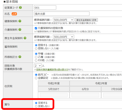 なお、賞与計算「する」の状態で賞与計算をし始めた場合、賞与計算「しない」に戻すことができません。