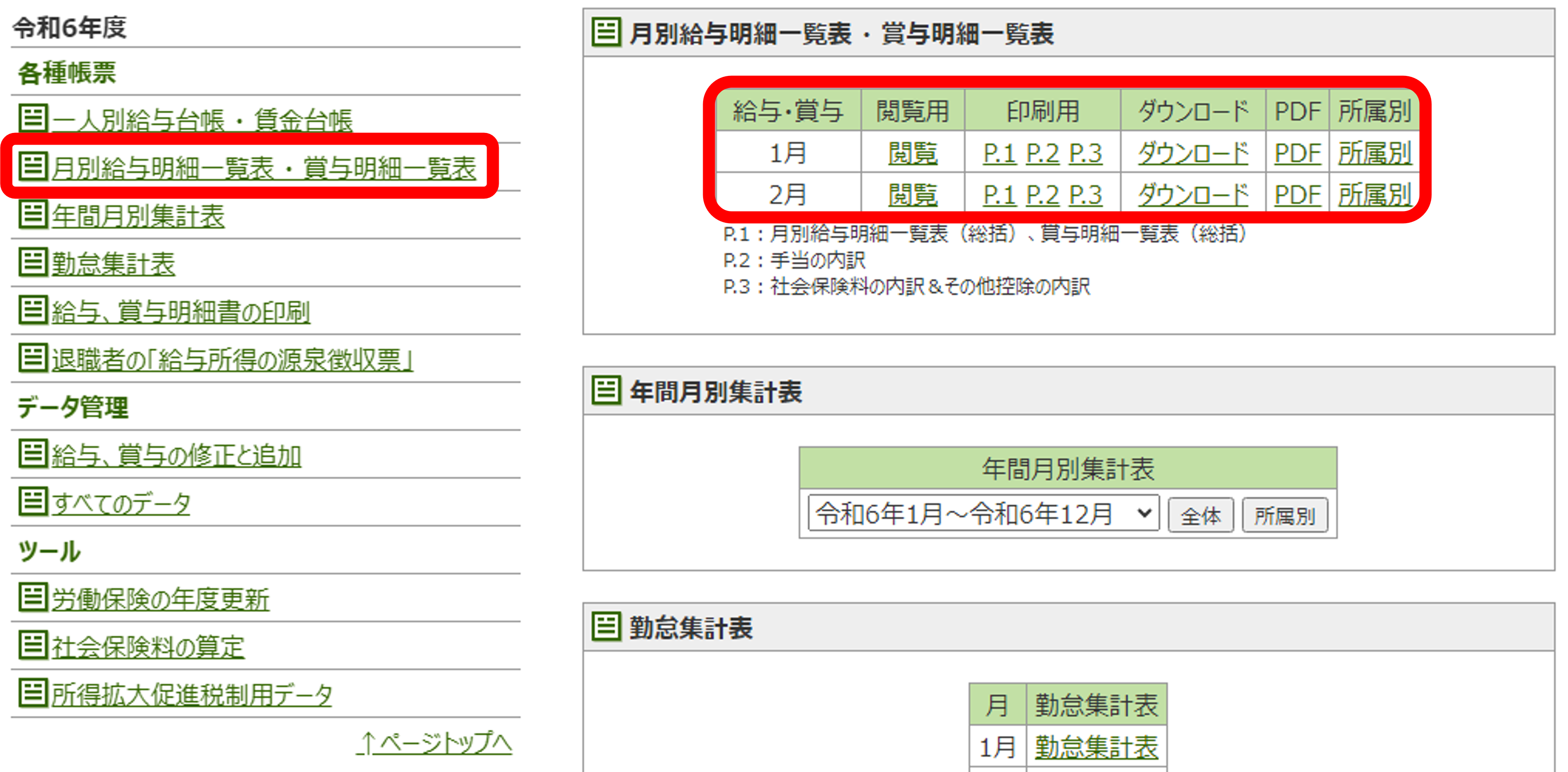 ③月別給与明細一覧表 ・ 賞与明細一覧表のすべての月をダウンロード