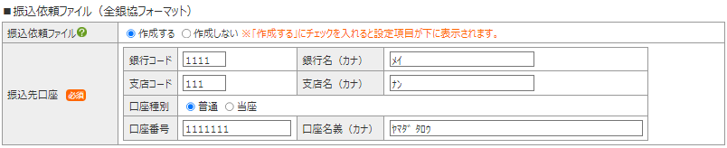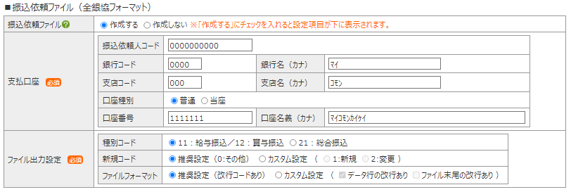 振込依頼ファイル(全銀協フォーマット)の設定方法