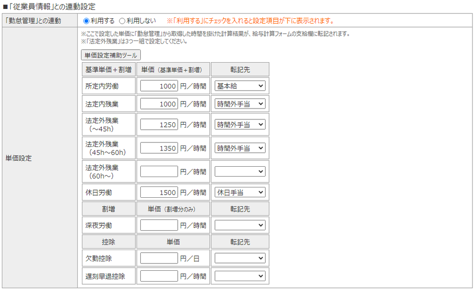 ③■「勤怠管理」との連動設定で「利用する」にチェック