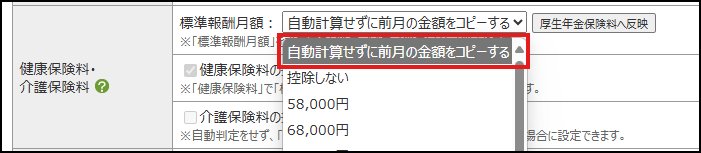 その上で、その他のメニュー>従業員一覧>従業員情報にて「自動計算せず、前月の金額をコピーする」の利用を推奨します。