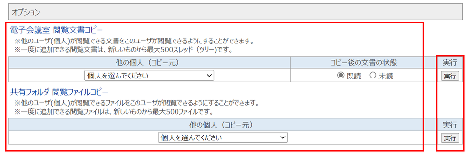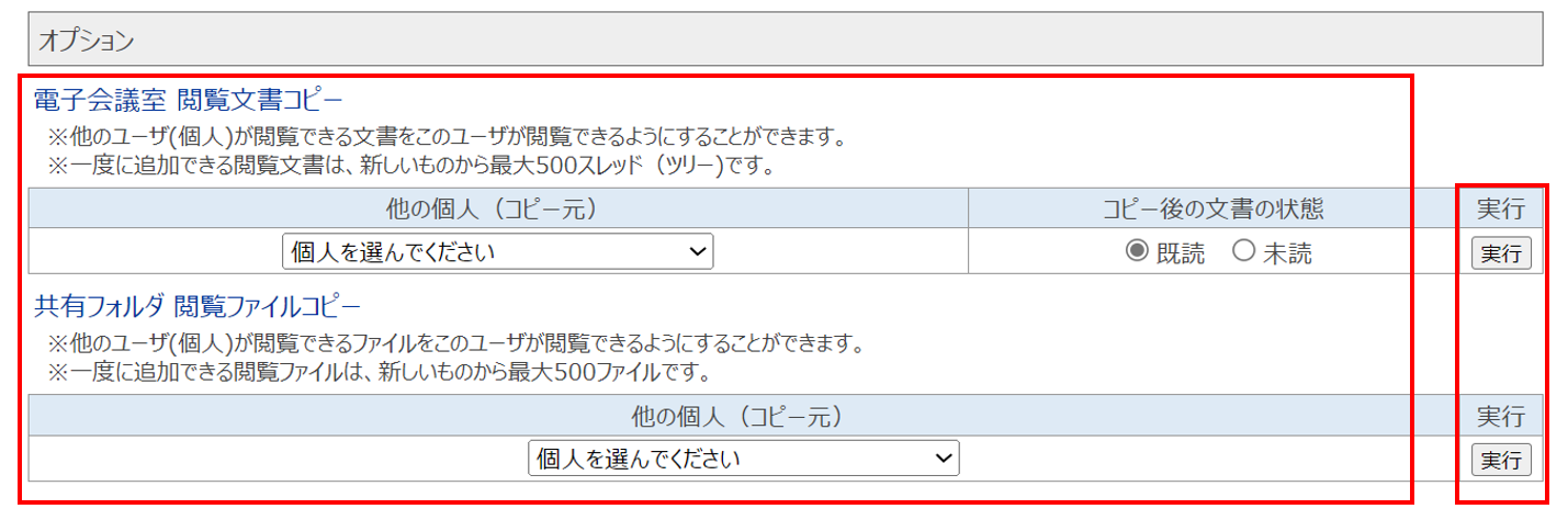 ④電子会議室閲覧文書コピーから、「他の個人(コピー元)」と「コピー後の文書の状態」を選択