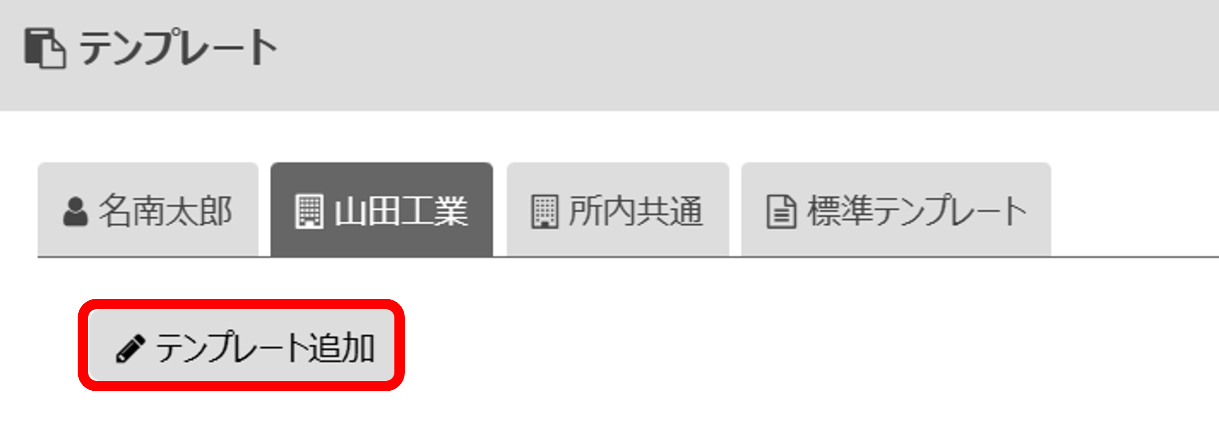 3)個人名もしくは会社名テンプレートのタブを開き、「テンプレート追加」をクリック