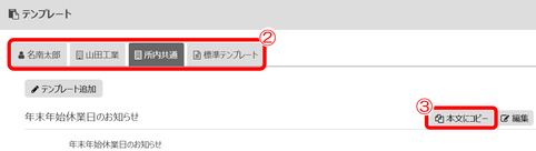 ②事前に登録しましたテンプレートを選択