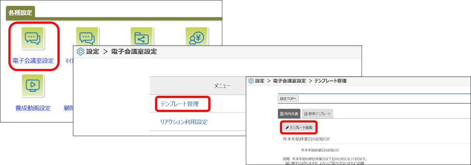2)「テンプレート管理」をクリック