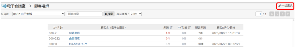 ①電子会議室を開き「一括書込」をクリック