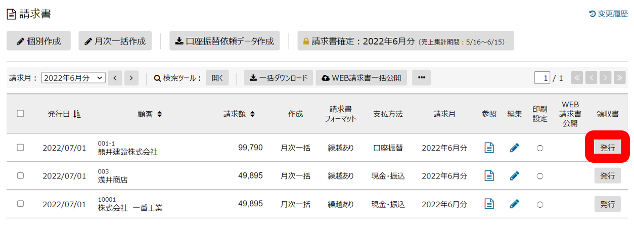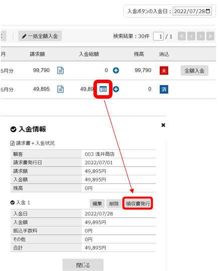 HOME よくあるご質問 請求管理 入金 領収書は発行できますか? 請求管理の入金についてのよくあるご質問 領収書は発行できますか? 可能です。 0人の方の参考になっています。 請求書もしくは入金管理画面より発行することができます。 請求書画面から発行する方法 入金管理画面から発行する方法 この質問・回答は参考になりましたか? ご回答ありがとうございます はい いいえ よろしければ「いいえ」の理由をお聞かせください。今後の改善のため、具体的な理由を以下のコメント欄にご記入ください。※ご質問をいただいても個別での回答はできかねますのでご了承ください。 回答の内容がわかりにくい リンク先のサイトの内容がわかりにくい その他 他のよくあるご質問 入金金額の削除はできますか? 料金を回収できなくなりました。入金管理から消したいのですがどうすればよいですか? 入金情報を修正・削除できません。 よくあるご質問TOPへ お問い合わせはこちら 移転、事務所名変更などの情報変更もこちらからご依頼ください。 お問い合わせはこちら 情報変更依頼はこちら よくあるご質問 随時更新中! 詳しくみる 料金表 申込 契約情報変更