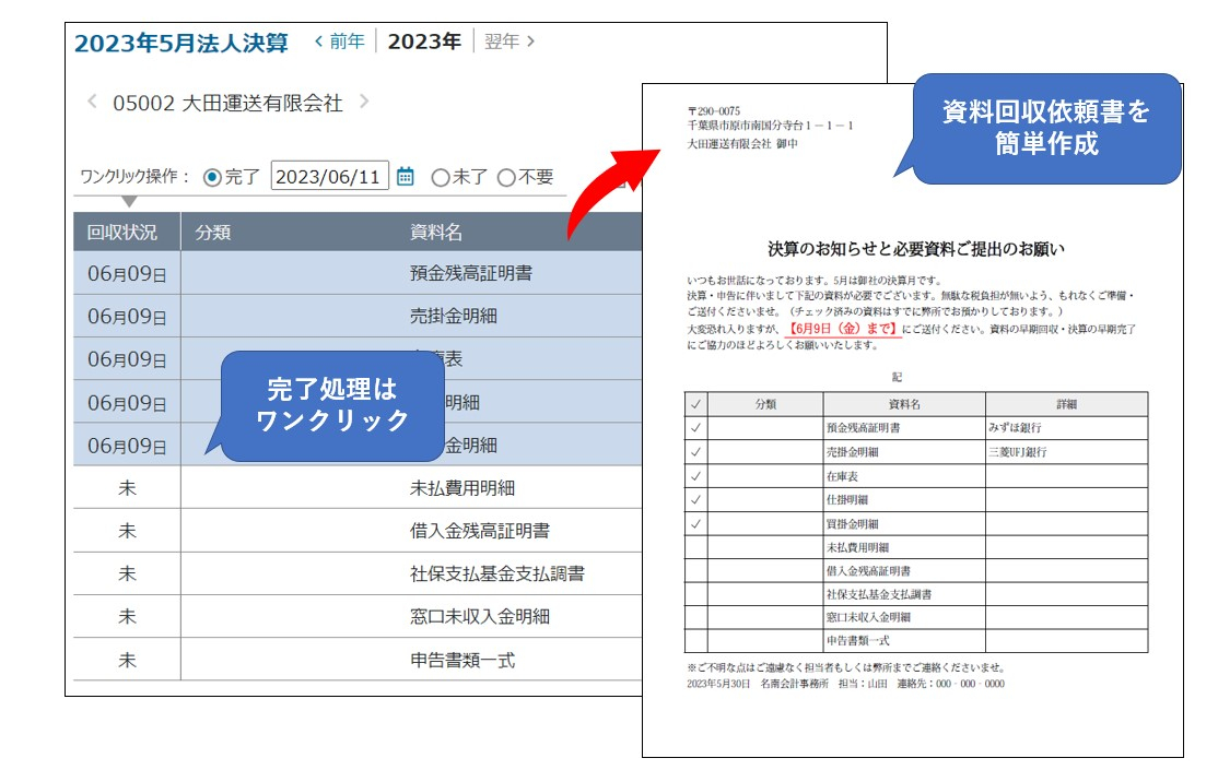 ・顧客に渡せる「資料回収依頼書」を簡単作成