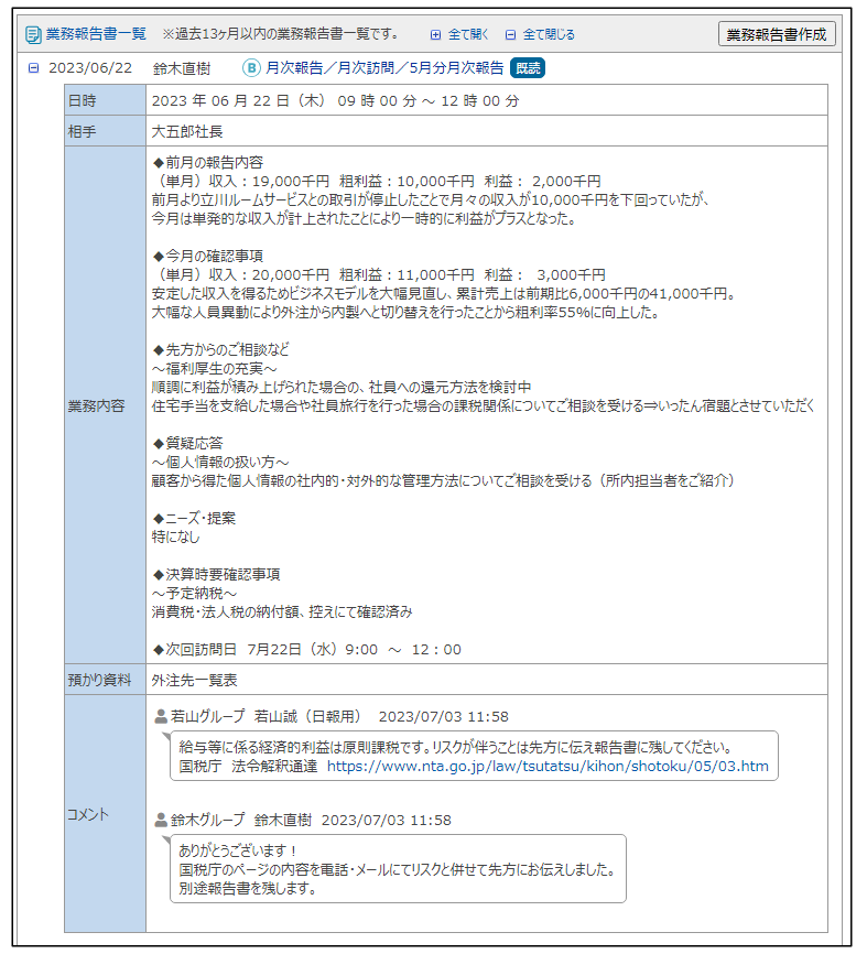 担当変更時や、普段対応していない所長や上長が顧問先の対応をする際などに集約ボードをぜひご覧ください。