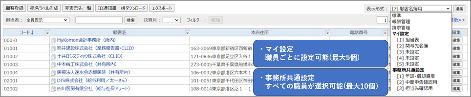 確定申告や年末調整など、目的ごとに表示項目を使い分けることで情報をすぐに確認できます。