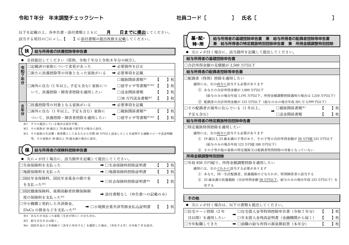 【仕事の7つ道具】年末調整チェックシートを顧客に提供