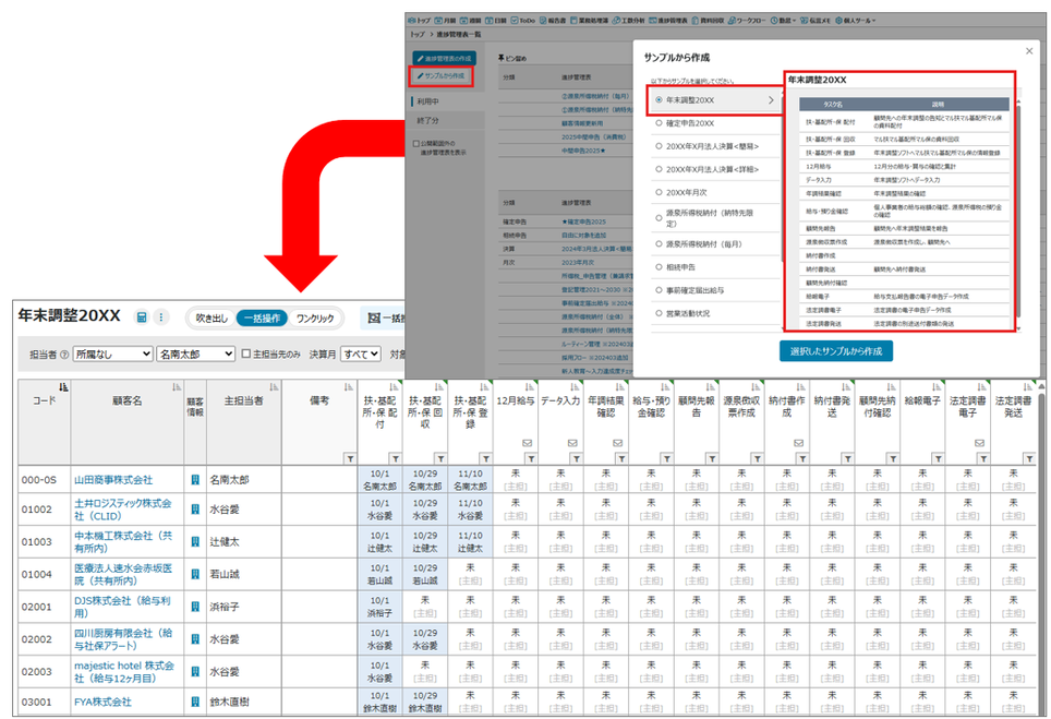 ・サンプルから簡単に進捗管理表を作成