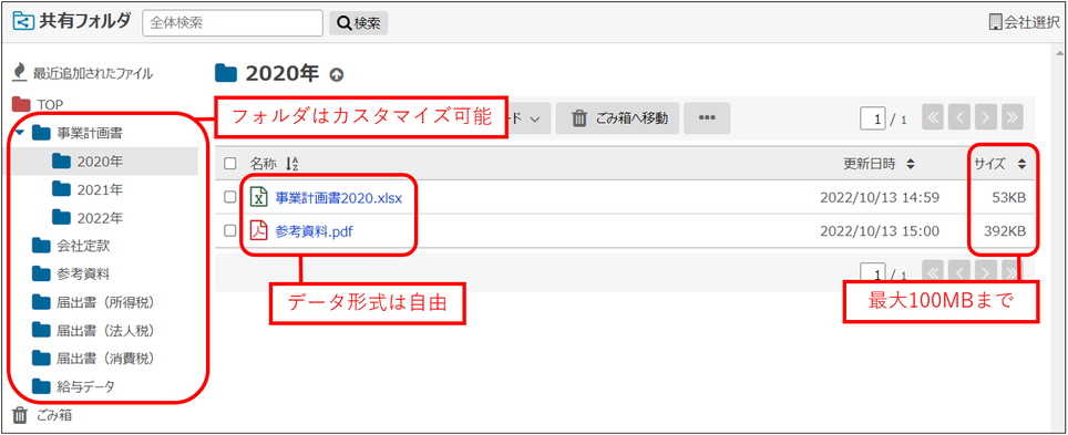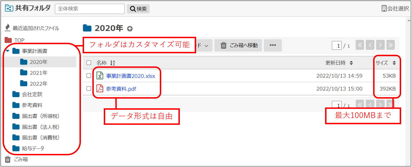 顧問先と共有ができるデータ保管庫としてご活用ください。