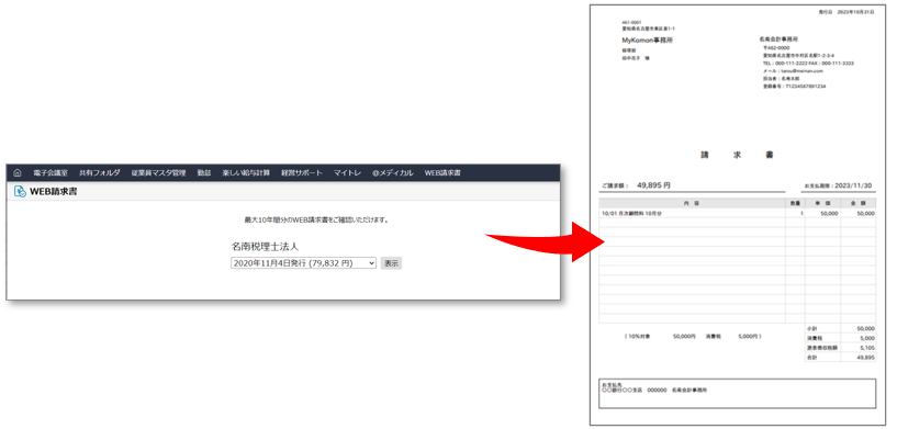 MyKomonの請求管理で作成した請求書をWEB上で公開できます。