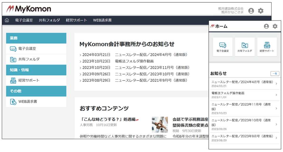 顧客用にMyKomonIDを発行することで、専用サイトとして活用できます。