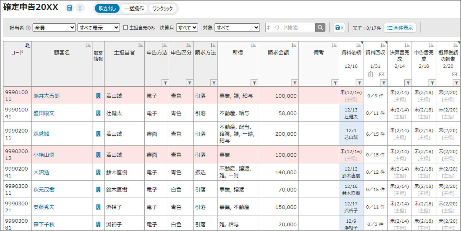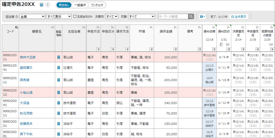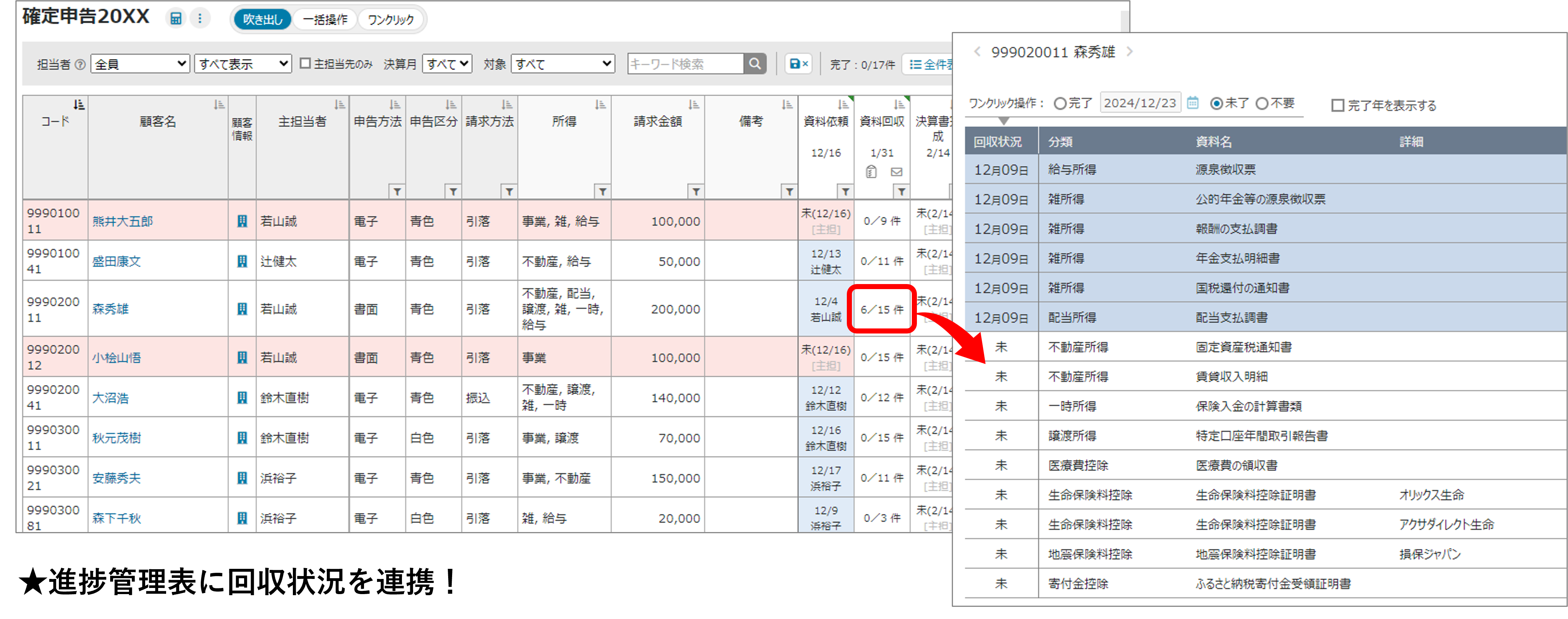 事務所全体での進捗状況把握や資料回収が早期完了の肝となります。