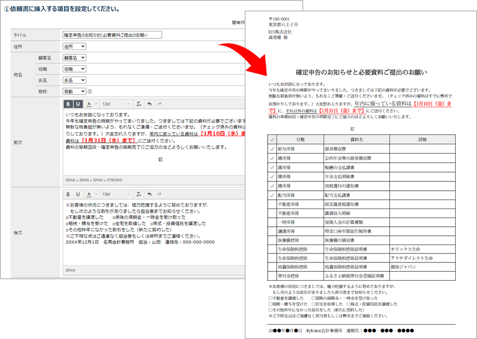 顧客に渡せる“資料回収依頼書”を簡単作成!
