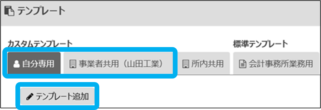 事業者共用 ・・・担当職員と顧客が共通で利用できるテンプレート