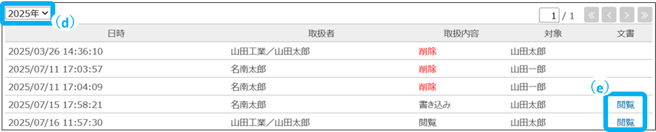 取扱履歴を年度ごとに確認できます。