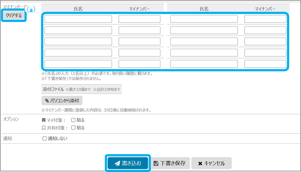 マイナンバー連絡欄が全てクリアされます。