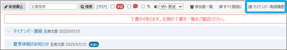 ③「マイナンバー取扱履歴」をクリック