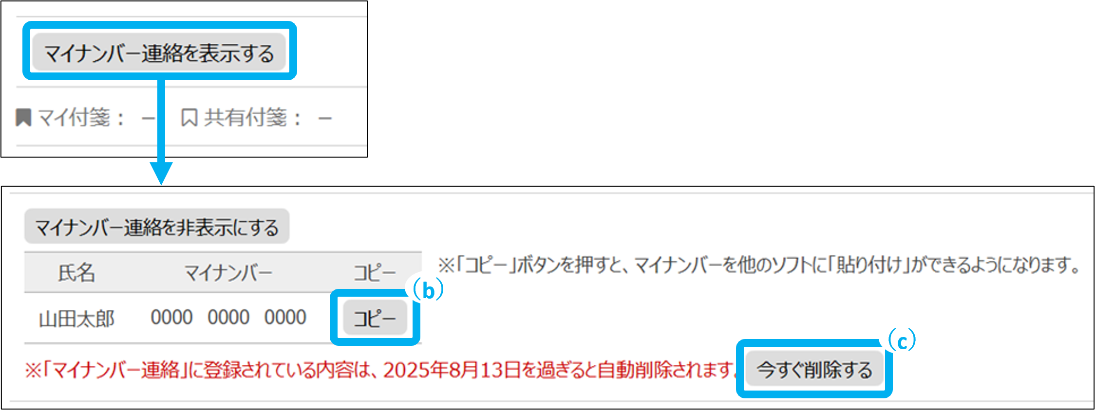 マイナンバー連絡欄の情報が全て削除されます。