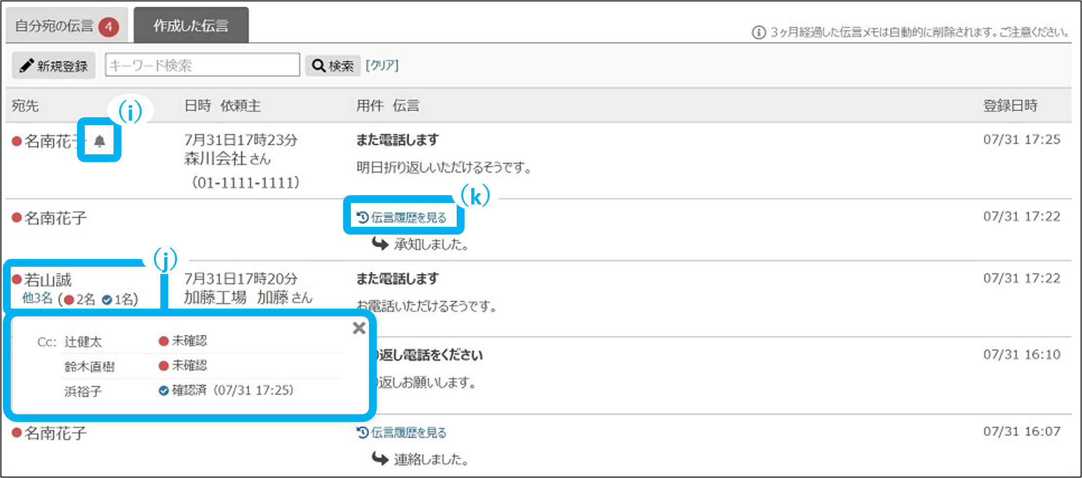 (k)伝言履歴を見る