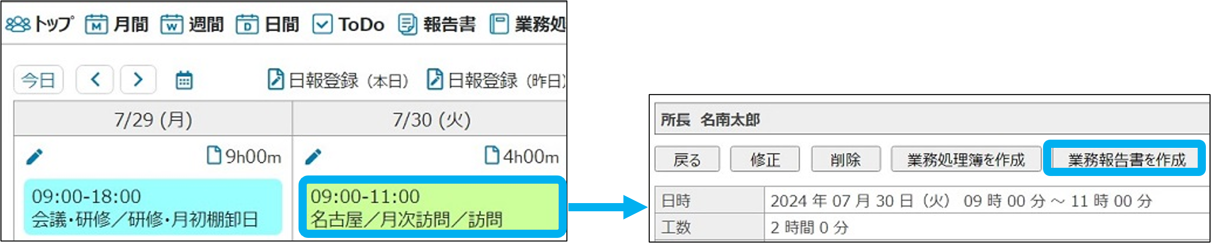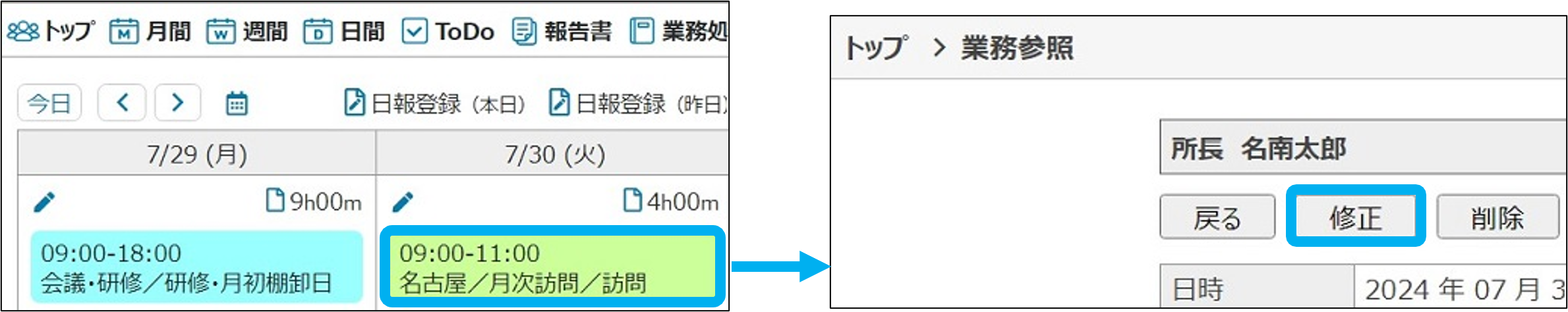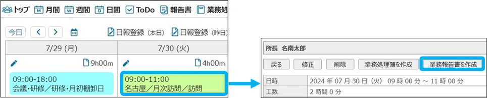 日報参照画面から修正できます。